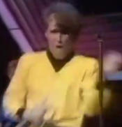 The Skids in which singer Richard Jobson leaps about in a yellow jump suit.
